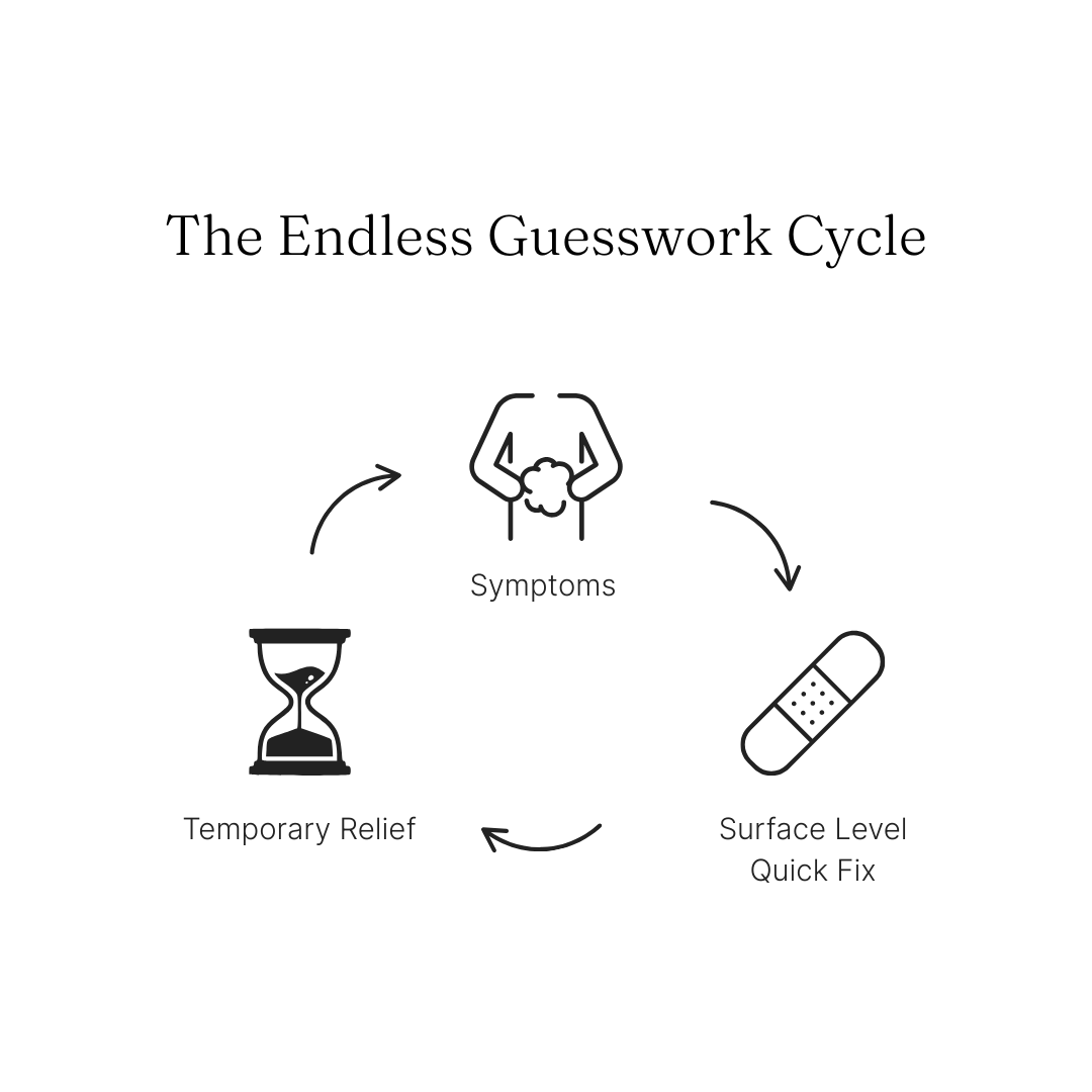 Most practitioners hand you a list of things to try before they even know what’s really wrong. That’s not a plan. That’s guessing.We start with answers.Real data. Your symptoms, your labs, your history. We use it to uncover the true causes behind what’s keeping you stuck. This way, we know exactly what to do.And most importantly, you’ll know it’s right for your situation. No more guessing. No more confusion. No more stitching random advice together hoping it works.