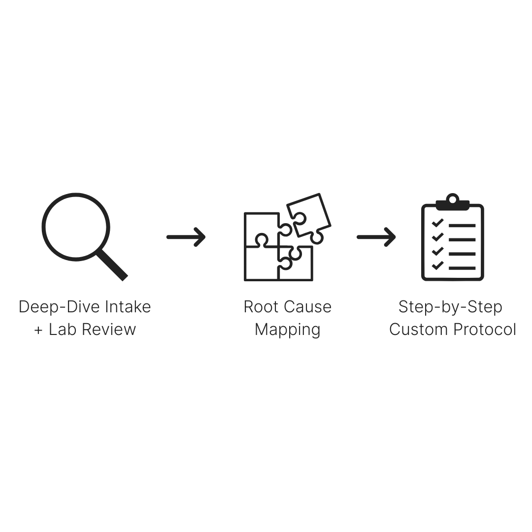 A full review of your symptoms, lab work, and health history to identify root causes and contributing factors